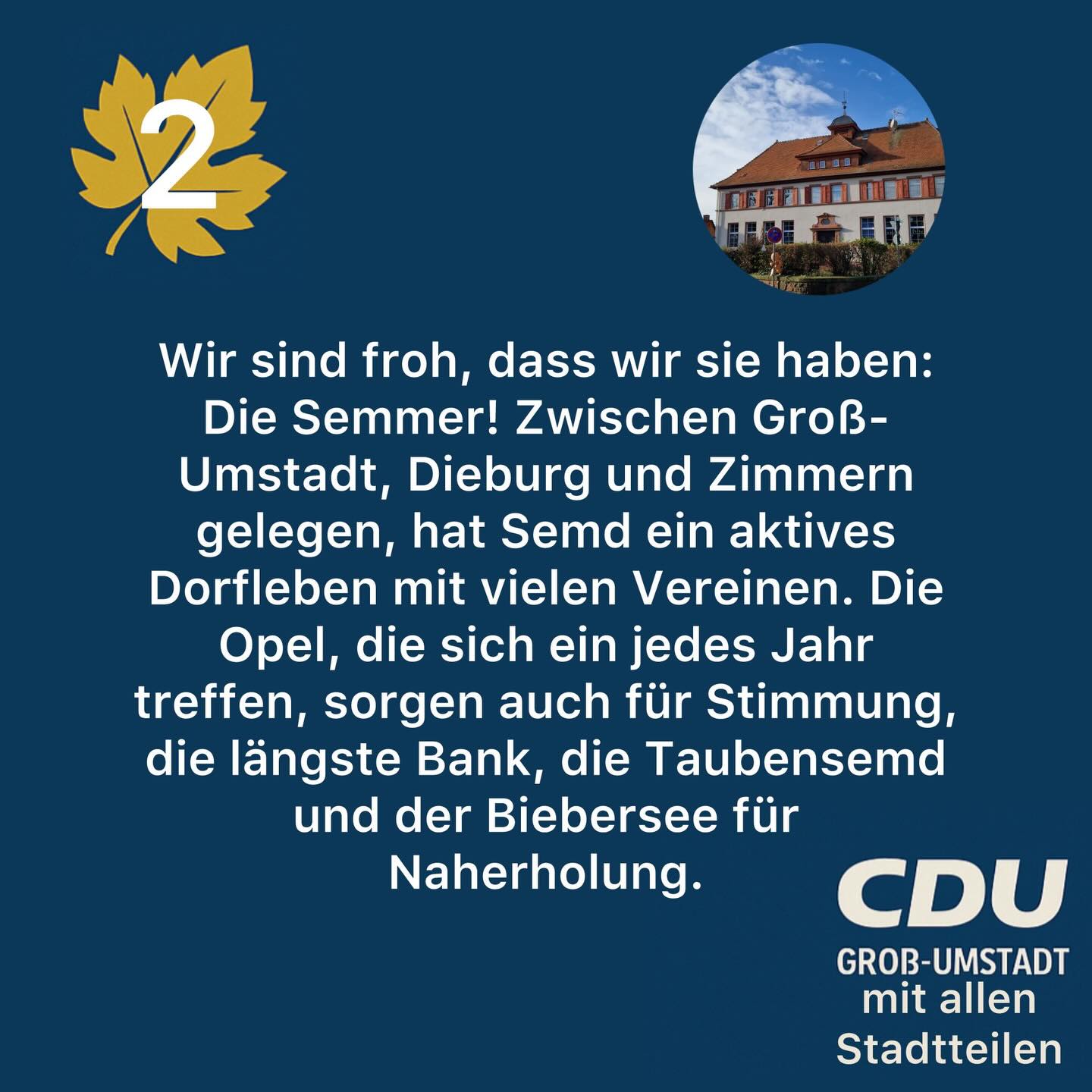 mehrEine schöne Adventszeit in Groß-Umstadt! ✨🎄 Die CDU Groß-Umstadt wünscht Ihnen und Ihren Familien eine fröhliche und besinnliche Adventszeit. Unsere Stadt erstrahlt in diesen Wochen in ganz besonderem Licht ? dank der vielen Advents- und Weihnachtsmärkte, der lebendigen Adventskalender und all der liebevoll organisierten Aktionen in den Stadtteilen. Ein herzliches Dankeschön an alle Ehrenamtlichen, Vereine, Initiativen und engagierten Bürgerinnen und Bürger, die mit ihrem Einsatz zu dieser schönen adventlichen Atmosphäre beitragen. Ihr Engagement macht Groß-Umstadt lebendig und warmherzig. 🙏✨ Wir freuen uns darauf, Ihnen in den kommenden Wochen zu begegnen ? bei Glühwein, Lichtern, Musik und guten Gesprächen. 🎅 Herzliche Einladung zur Nikolausaktion am Samstag, 6. Dezember ab 9:00 Uhr auf dem Marktplatz! Kommen Sie vorbei ? wir freuen uns auf den Austausch mit Ihnen! Eine gesegnete Adventszeit für Sie alle! ✨ Ihre CDU Groß-Umstadt