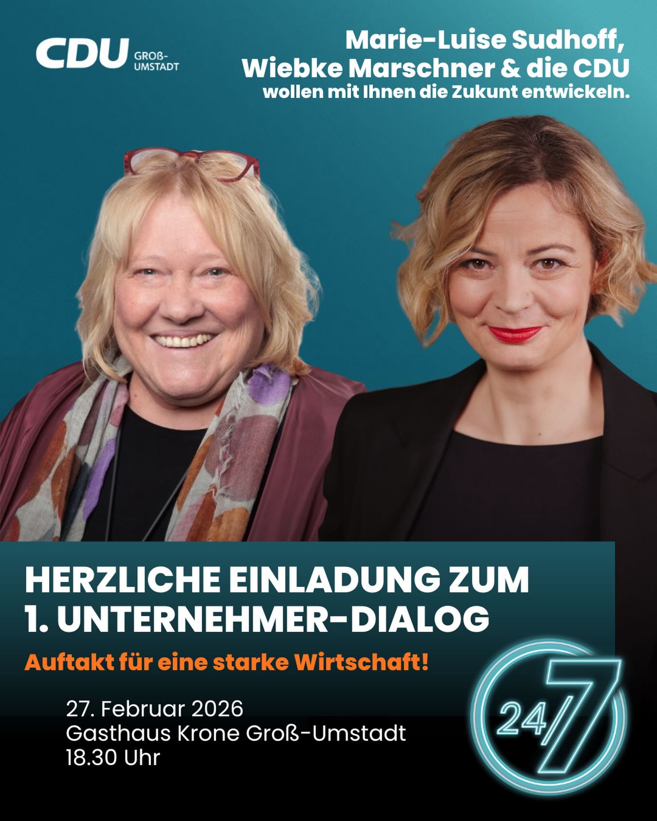 Um konkrete Maßnahmen für eine wirtschaftlich starke Zukunft zu entwickeln, lädt sie gemeinsam mit Wiebke Marschner und der CDU Groß-Umstadt herzlich ein am Freitag,