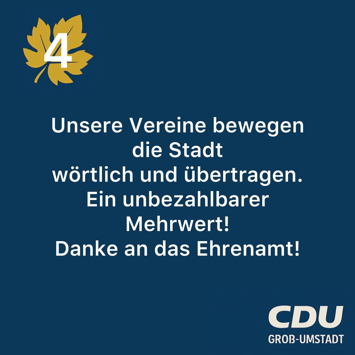 mehrEine schöne Adventszeit in Groß-Umstadt! ✨🎄 Die CDU Groß-Umstadt wünscht Ihnen und Ihren Familien eine fröhliche und besinnliche Adventszeit. Unsere Stadt erstrahlt in diesen Wochen in ganz besonderem Licht ? dank der vielen Advents- und Weihnachtsmärkte, der lebendigen Adventskalender und all der liebevoll organisierten Aktionen in den Stadtteilen. Ein herzliches Dankeschön an alle Ehrenamtlichen, Vereine, Initiativen und engagierten Bürgerinnen und Bürger, die mit ihrem Einsatz zu dieser schönen adventlichen Atmosphäre beitragen. Ihr Engagement macht Groß-Umstadt lebendig und warmherzig. 🙏✨ Wir freuen uns darauf, Ihnen in den kommenden Wochen zu begegnen ? bei Glühwein, Lichtern, Musik und guten Gesprächen. 🎅 Herzliche Einladung zur Nikolausaktion am Samstag, 6. Dezember ab 9:00 Uhr auf dem Marktplatz! Kommen Sie vorbei ? wir freuen uns auf den Austausch mit Ihnen! Eine gesegnete Adventszeit für Sie alle! ✨ Ihre CDU Groß-Umstadt